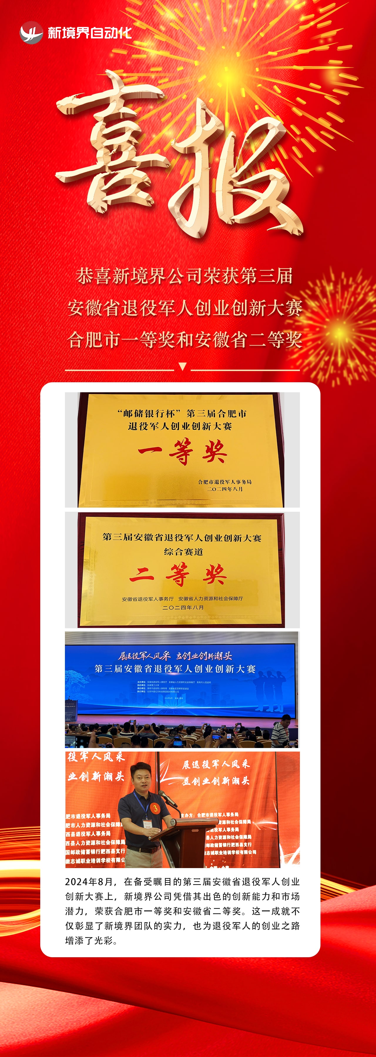 恭喜新境界公司榮獲第三屆安徽省退役軍人創(chuàng)業(yè)創(chuàng)新大賽合肥市一等獎和安徽省二等獎