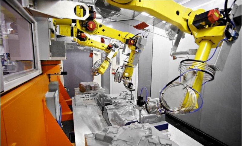 恰逢此時,安徽新境界自動化技術有限公司新產(chǎn)品XJJ-DRV1型全自動機器人打磨系統(tǒng)應運而生。該產(chǎn)品以其顯著的七軸六聯(lián)動特性及性能范圍廣得到廣泛應用,將打磨作業(yè)的上料、打磨、吹氣、噴淋、排屑、下料等工序置于一個全封閉環(huán)境,凈化了工廠環(huán)境,有效減少了職業(yè)病與人身安全等隱患的發(fā)生率。歷時近兩年的時間,借鑒國外在該領域應用的先進技術,同時結合公司多年工業(yè)機器人打磨技術經(jīng)驗,成功研發(fā)具有自主知識產(chǎn)權的全自動機器人打磨系統(tǒng)新產(chǎn)品。