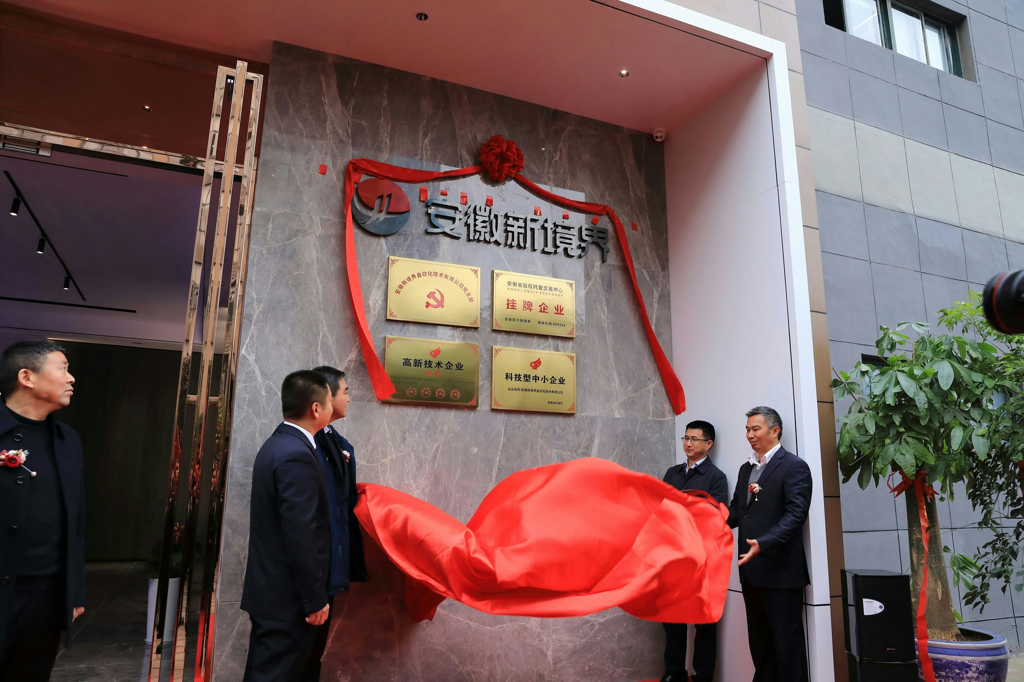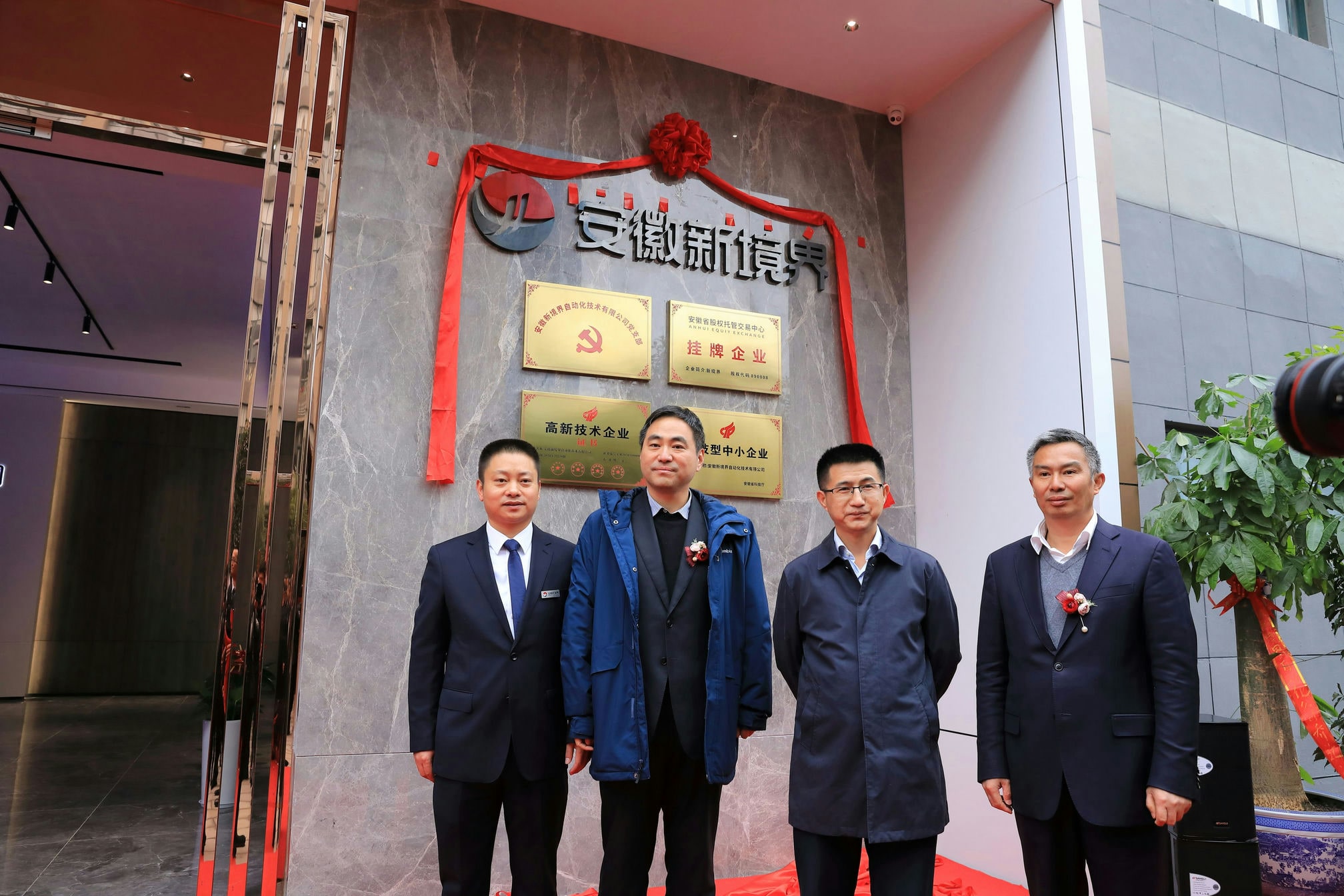 公司于12月7日舉行了喬遷開(kāi)業(yè)慶典,早上十點(diǎn)各方領(lǐng)導(dǎo)和嘉賓陸續(xù)到達(dá)現(xiàn)場(chǎng),在主持人介紹完到場(chǎng)嘉賓后,安徽新境界自動(dòng)化技術(shù)有限公司總經(jīng)理殷杰先生致詞,回顧過(guò)去,展望未來(lái)!同時(shí)向前來(lái)參加儀式的領(lǐng)導(dǎo)及嘉賓表示誠(chéng)摯的謝意。隨后,合肥產(chǎn)投集團(tuán)黨委委員、董事、副總經(jīng)理江鑫先生和合肥蜀山經(jīng)濟(jì)開(kāi)發(fā)區(qū)黨工委書(shū)記、管委會(huì)主任韓東先生致辭,對(duì)公司喬遷之喜表示熱烈的祝賀。十一點(diǎn)零八分,殷總和各位領(lǐng)導(dǎo)一起為新境界喬遷揭牌。